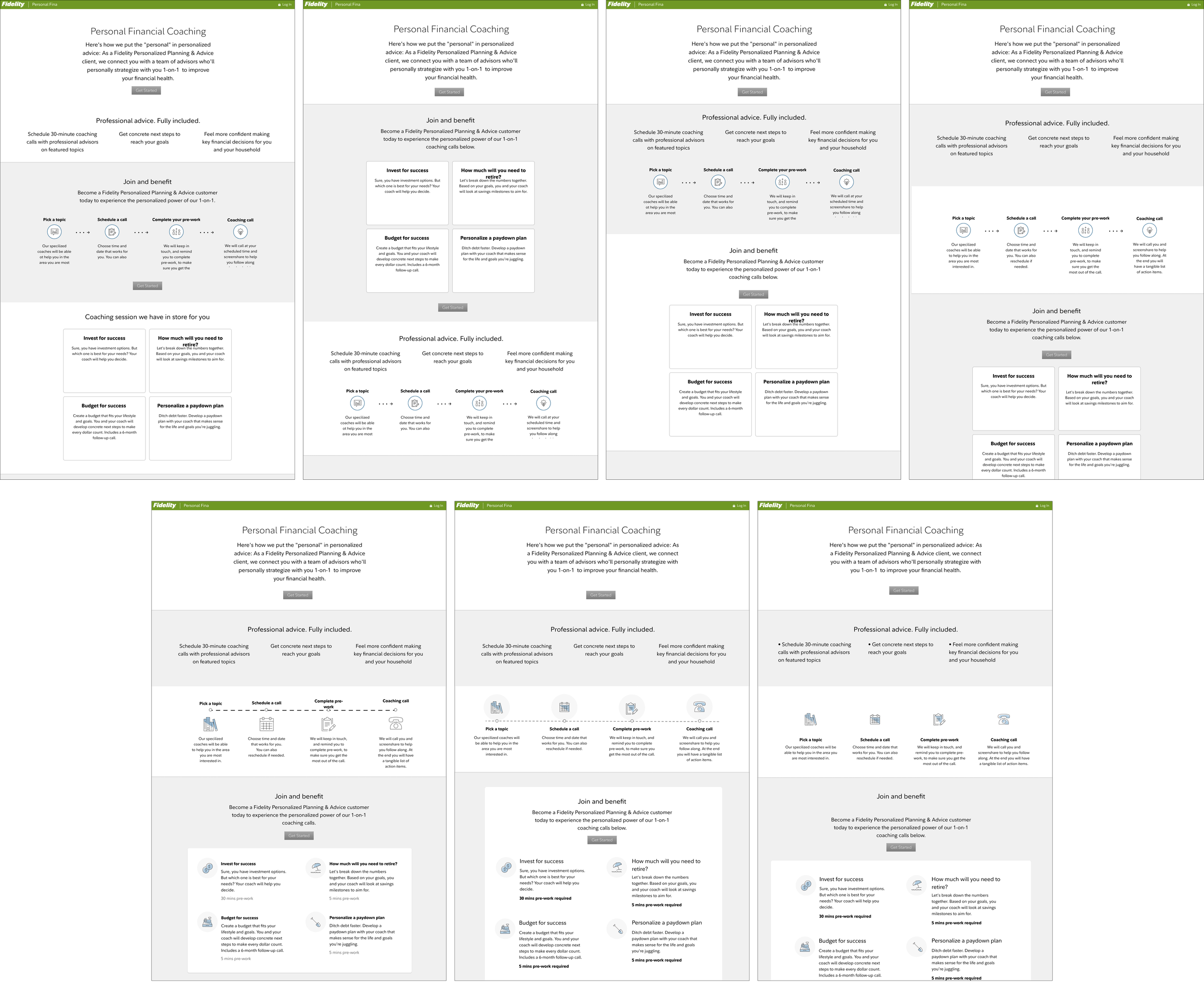 Hallway testing produced a nuanced result. Customers preferred the simpler horizontal layout. It was easier to scan and faster to get to the coaching options. Prospects preferred the vertical version, which gave them more scaffolding to understand what the call would involve. Both groups found it easy to locate information and learn about coaching options.
