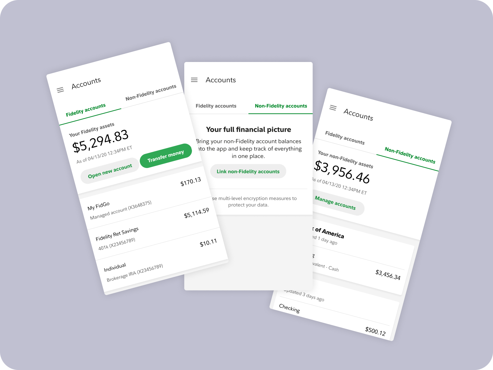 This project was as much about trust as it was about functionality — connecting financial accounts from outside Fidelity required users to feel secure at every step. The final design balanced that sensitivity with a flow that felt lightweight enough to actually complete.