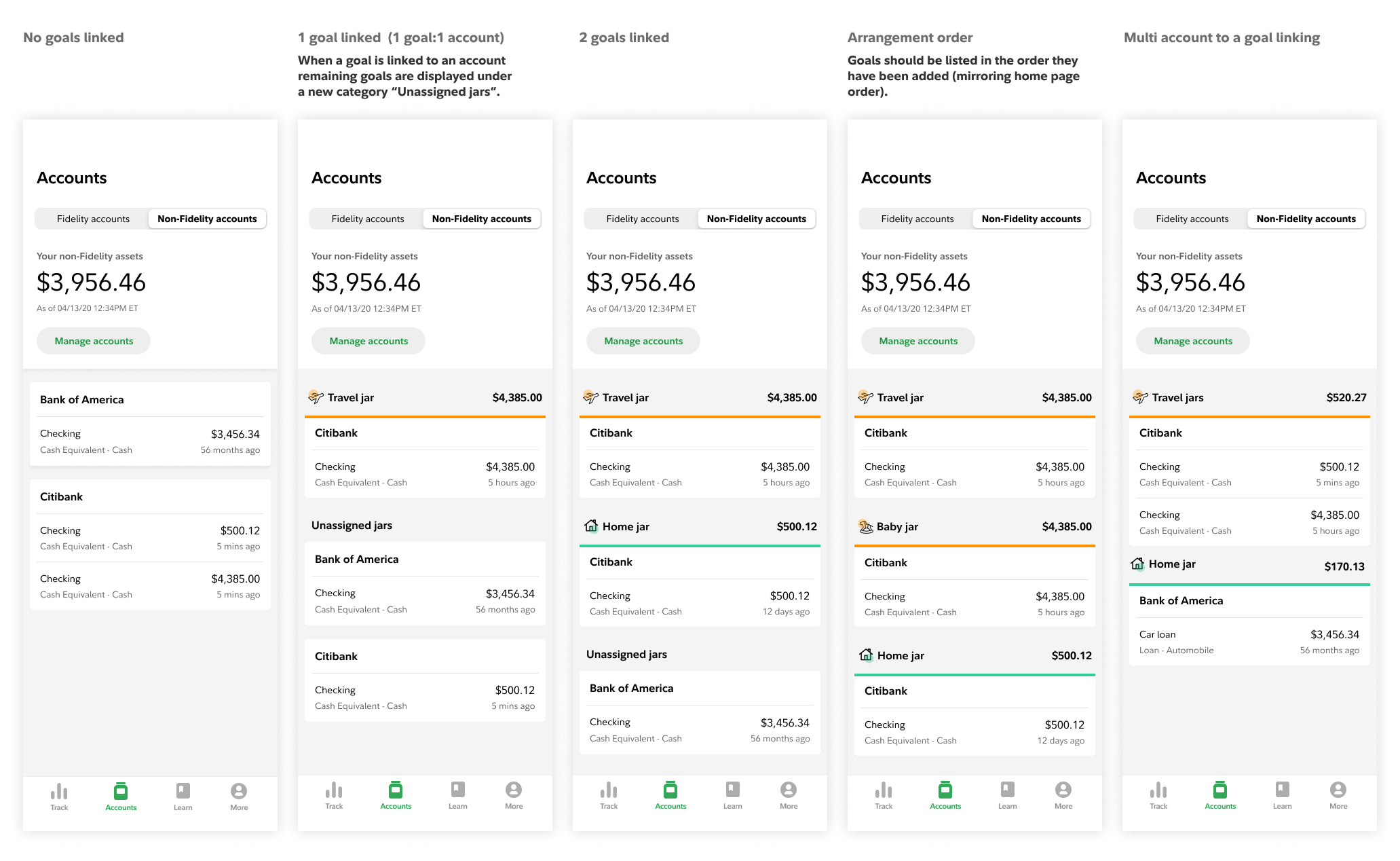 This gave users a way to see their external accounts in the context of what they were saving for. We heard positive feedback on it and it helped users distinguish between accounts and gave meaning to balances that would otherwise just be numbers.