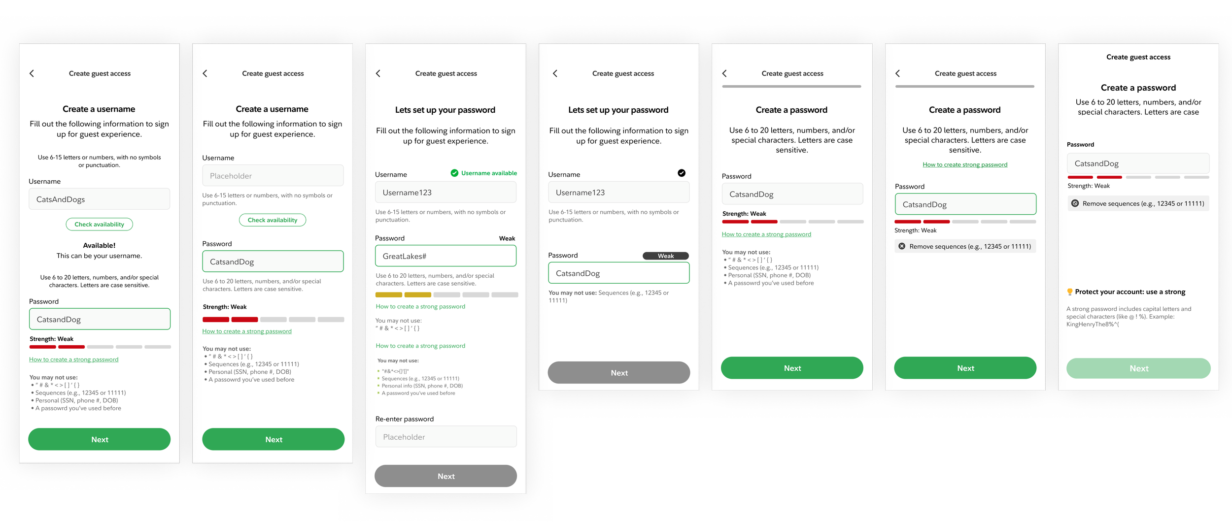 Speed matters during sign-up because any friction is a reason to abandon. I explored live inline validation for username availability and password requirements, testing it against static requirement lists to see which helped users move faster and with more confidence.