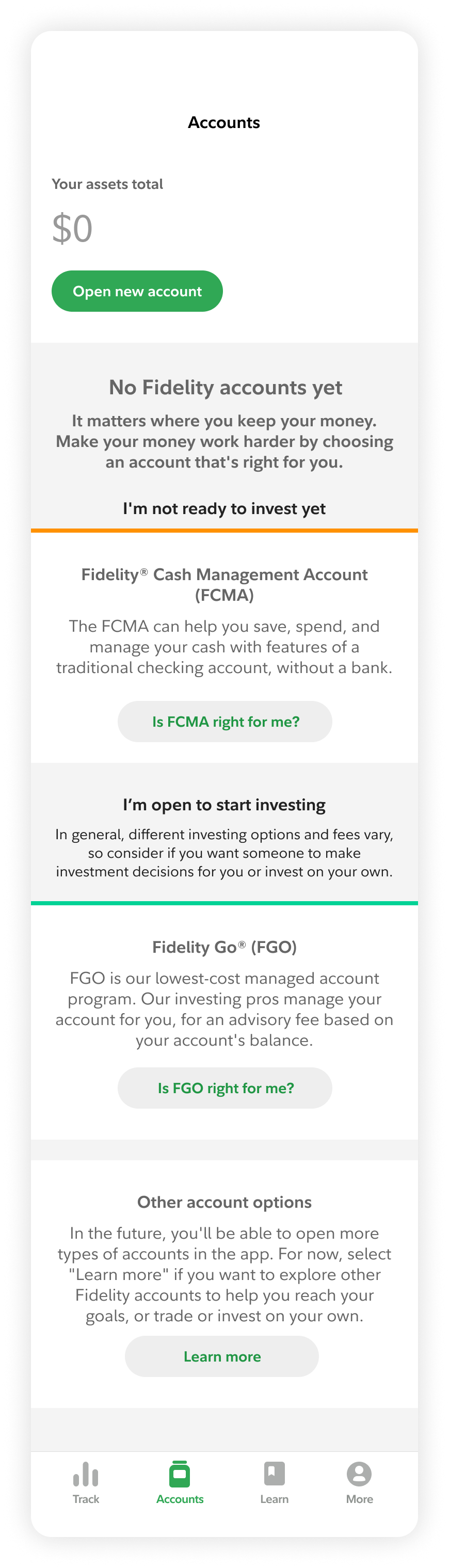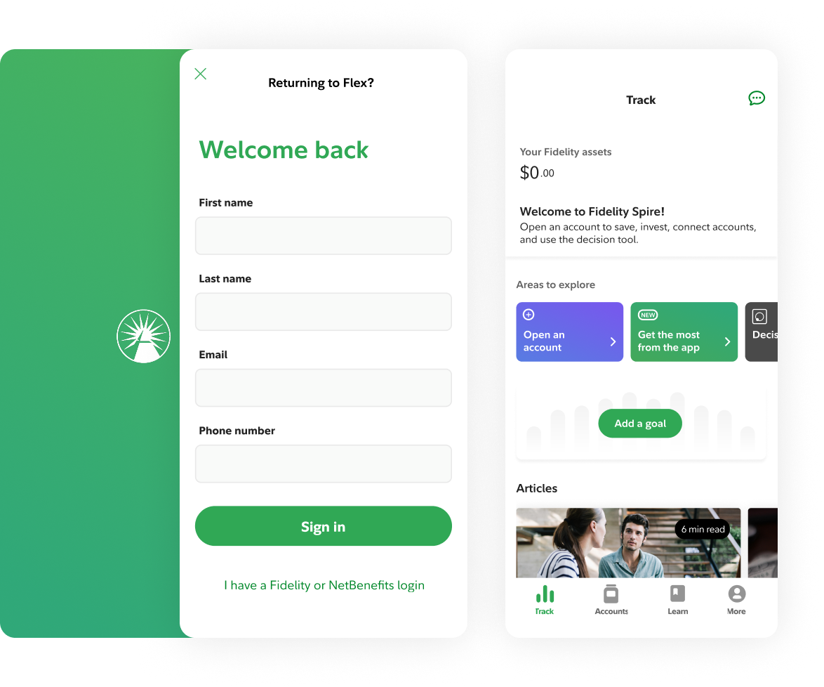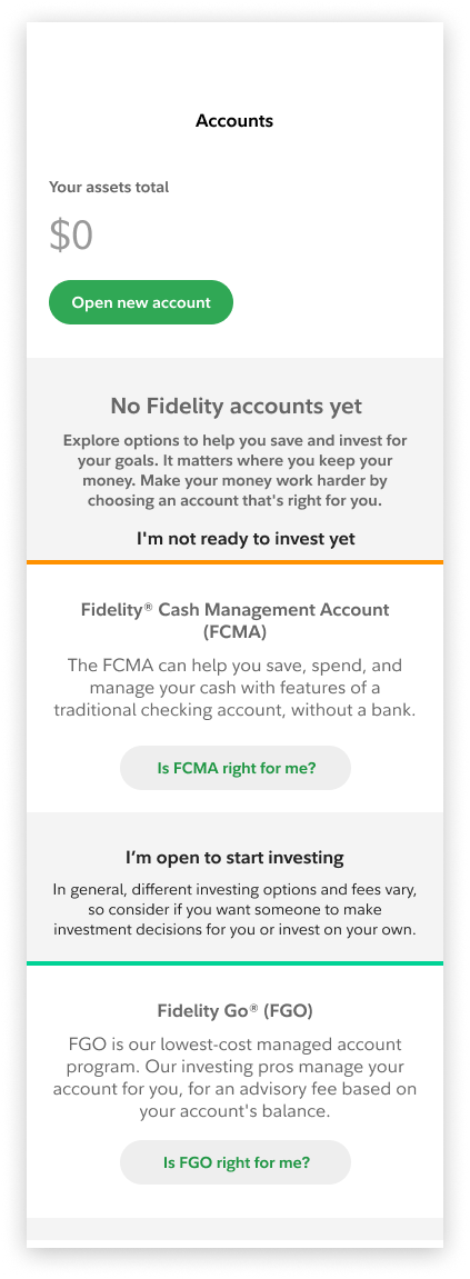 Objective: Design Fidelity’s first prospect-level mobile experience, allowing users to explore Spire before opening an account.